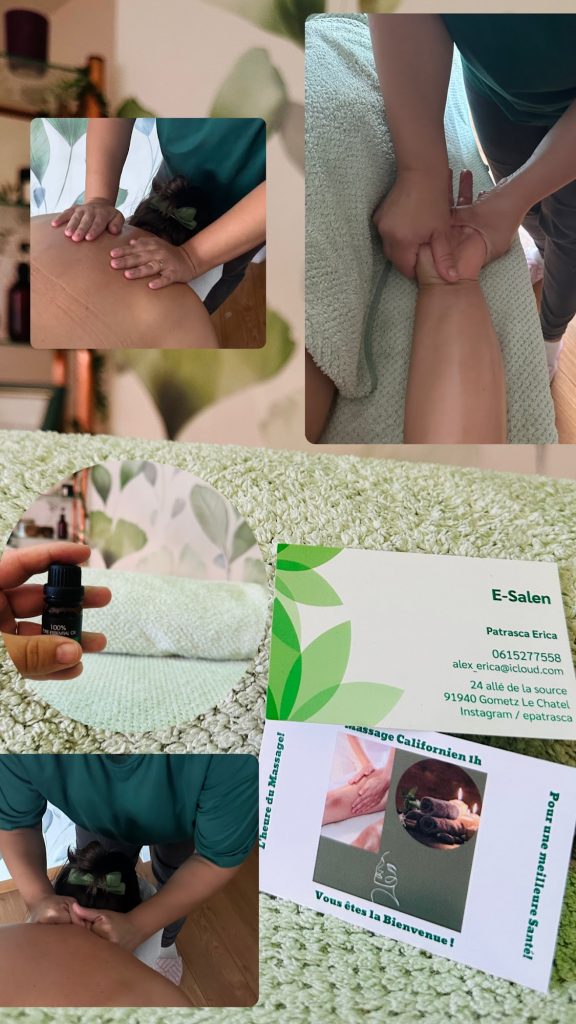 Auto entrepreneur bien-etre .Je vous accueille dans une piece agreable pour passer un moment de detente que pour vous! Je vous propose le massage . Californien,Kobido,Drainage lymphatique.Chaque massage a des bienfaits differents .Je suis la pour ecouter et entendre les besoins de client. Praticienne Professionnelle!
