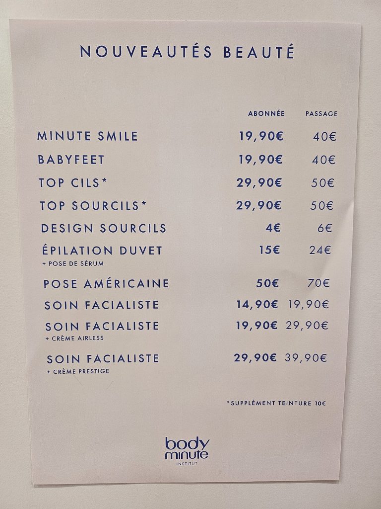 Ndeg1 des instituts de beaute sans rendez-vous exclusivement feminin, Bodyminute vous offre l’expertise de ses 480 instituts et de ses estheticiennes facialistes diplomees. Decouvrez une large gamme de soins visage, soins du corps, massages, pose de vernis mains et pieds (classique et semi-permanent), beaute des pieds, epilation, cure minceur, epilation a la lumiere pulsee ainsi que des seances de photo-rajeunissement. Grace a l’abonnement a 12,90 EU/mois profitez de l’acces a toutes les prestations au tarif abonnee et de -30% sur tous les cosmetiques Skinminute Switzerland. Les formules sont …