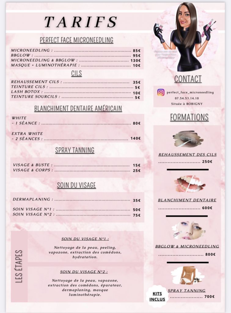 Reservation sur acompte pour les prestations suivante , rehaussement des cils teinture des cils , lash botox , soins microneedling soins bb glow soins du visage en profondeur, Dermaplaning ou encore un blanchiment dentaire Americain , ,n’hesitez plus , retrouvez moi sur Instagram egalement : perfect_face_microneedling