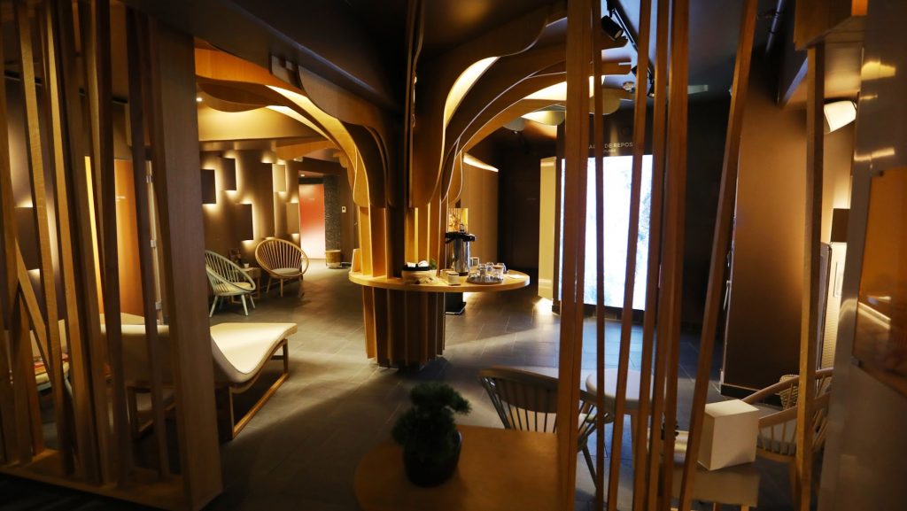 A travers ses lignes epurees, l’architecture boisee et naturelle du spa Deep Nature s’integre parfaitement au decor mineral de l’Aqualagon. Le spa vous propose un <> comprenant une cabine de sel (pour les personnes souffrant de probleme de peau), un hammam (pour se ressourcer) et un sauna (l’ideal pour se relaxer). Vous pouvez egalement vous detendre dans l’espace de relaxation avec tisanerie.
